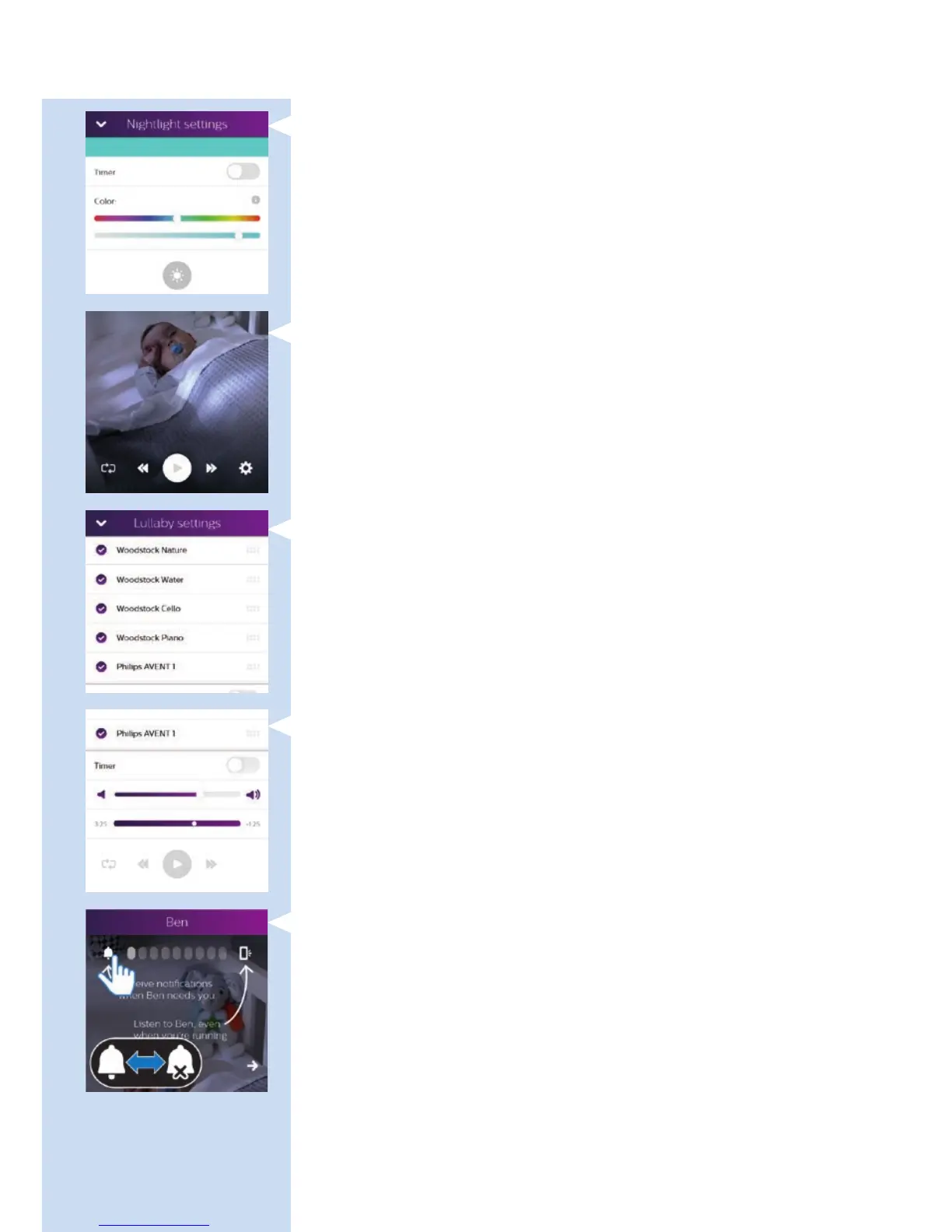- Select a lullaby from a list of lullabies