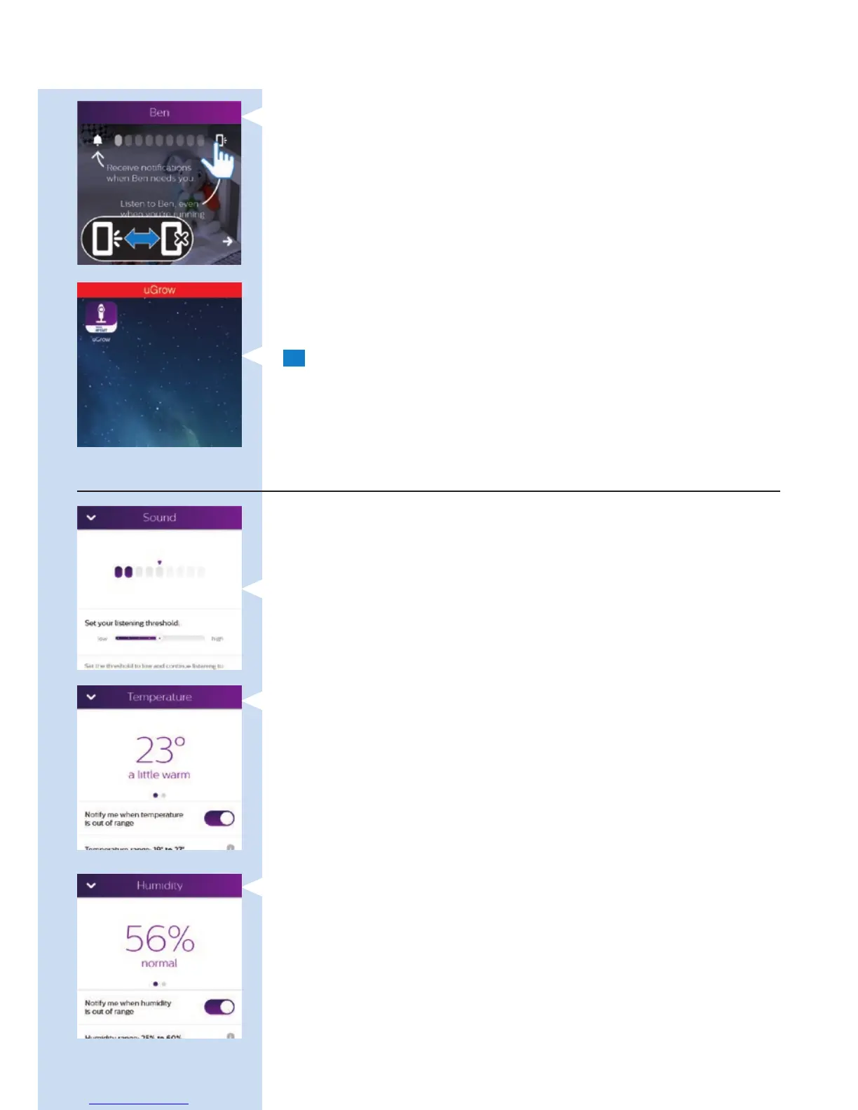 Note: If the slider is set to ‘quiet’, you will hear your baby continuously when