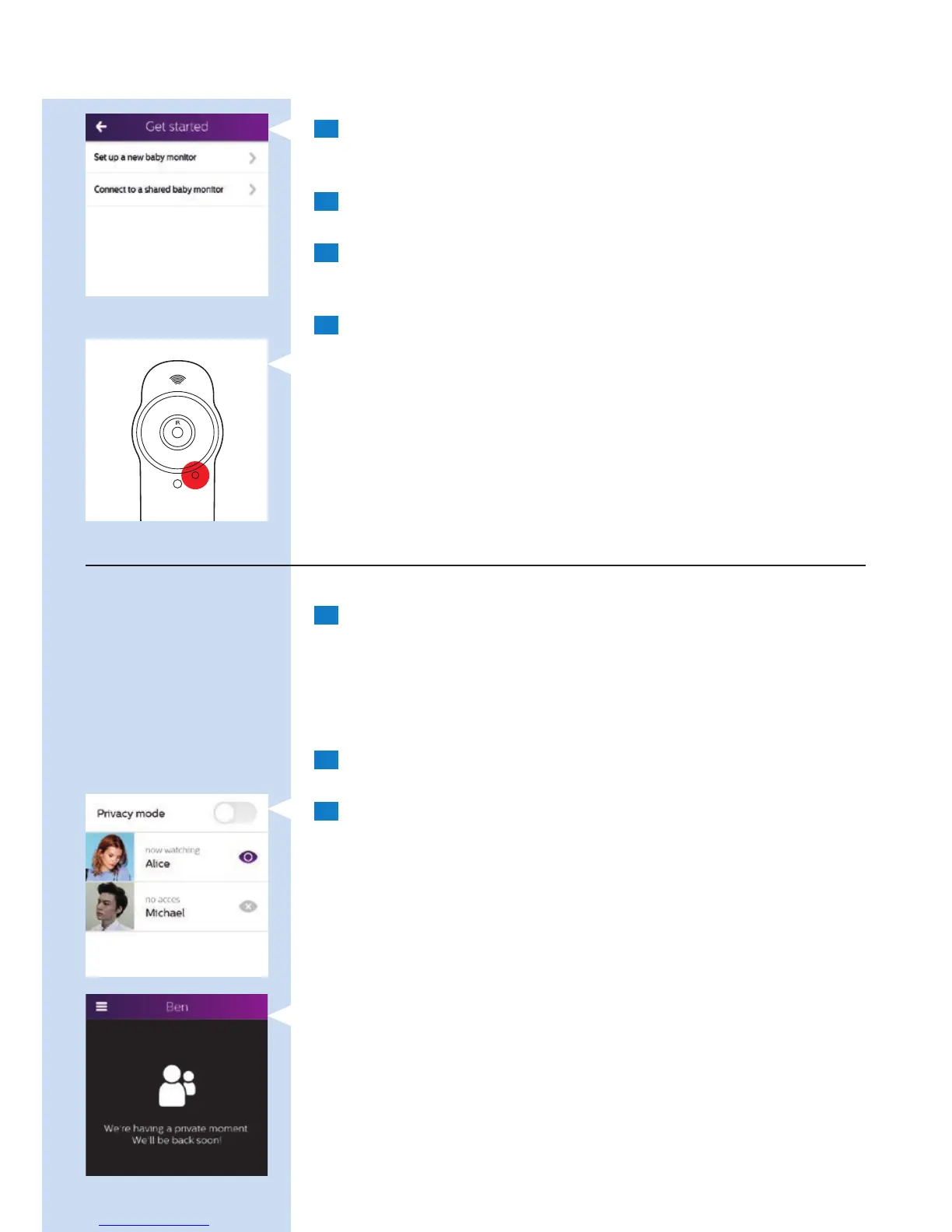 to the baby monitor until you tap the privacy mode button again.