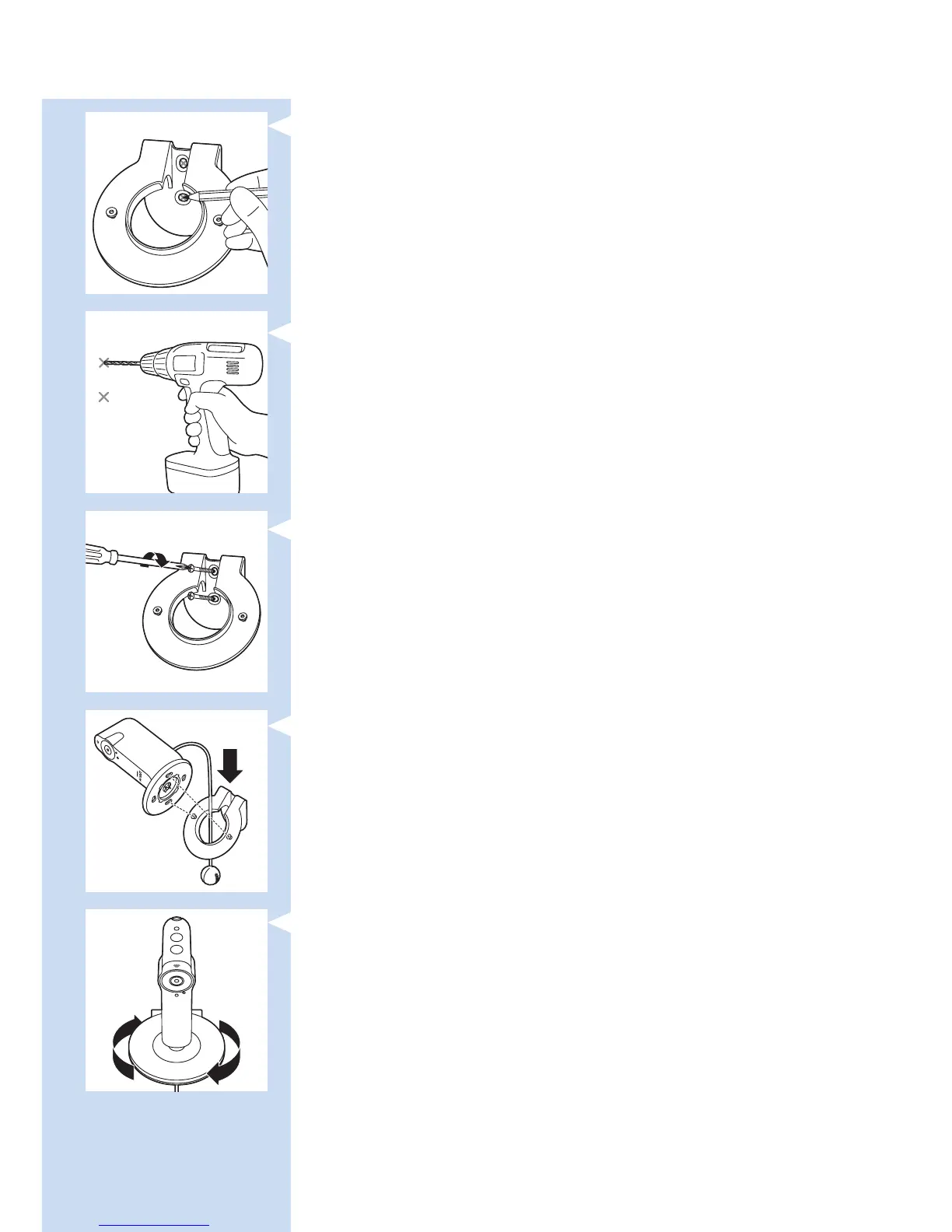 the wall mounting bracket. Then align the slots in the foot of the baby