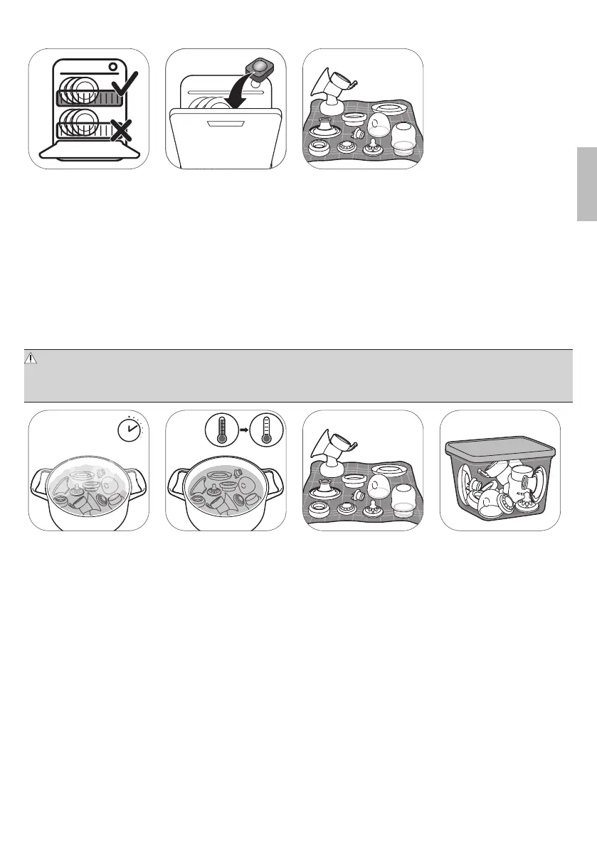 Attention : Lors de la désinfection à l'eau bouillante, veillez à éviter que le biberon ou