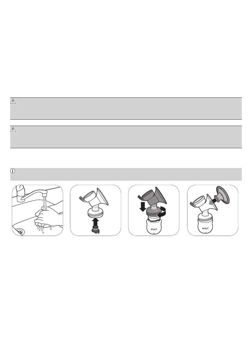 Uyarı: Dikkat edin, göğüs pompası parçalarını kaynatıp dezenfekte ettikten sonra çok