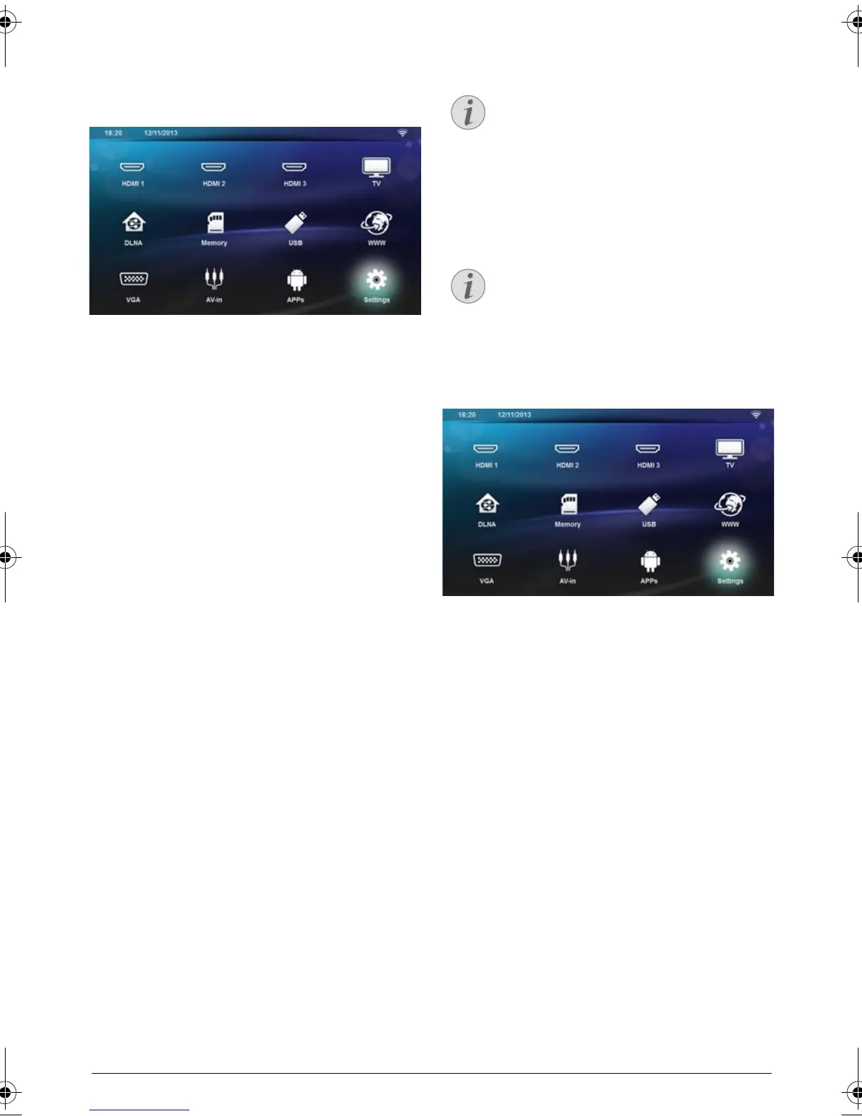 3 Use the navigation keys to select Settings.