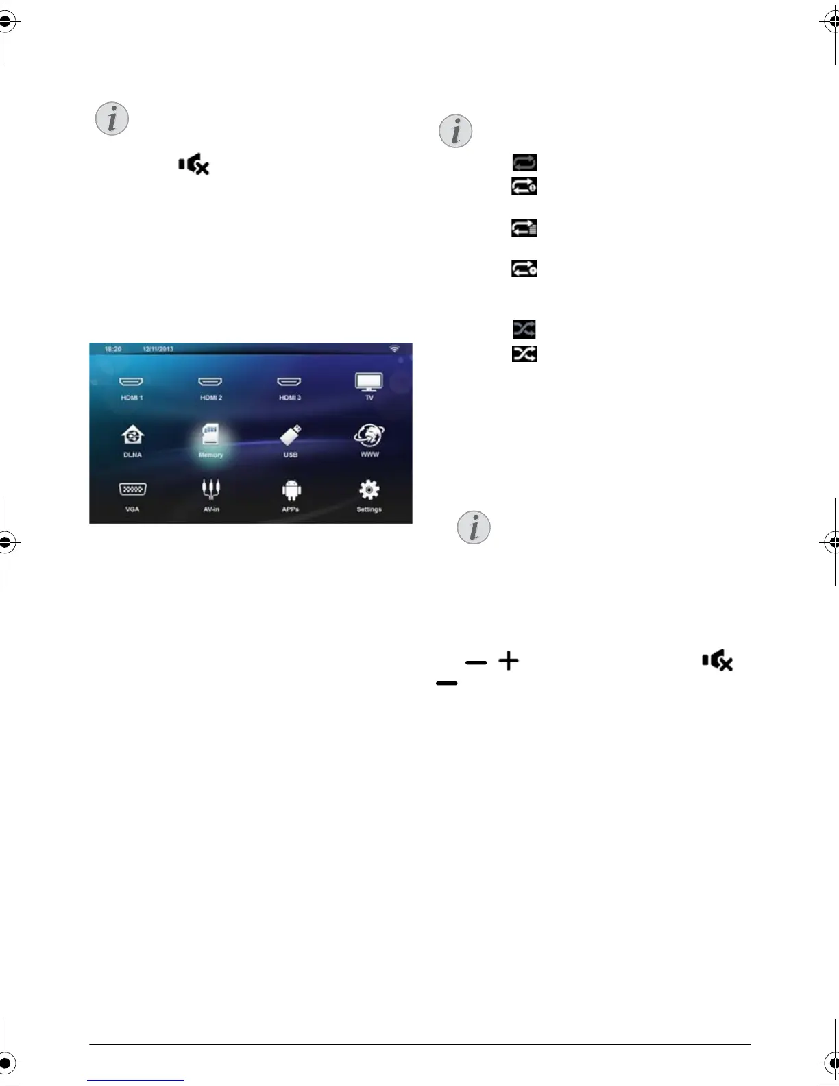 • : Play all musics in the media in loop.
