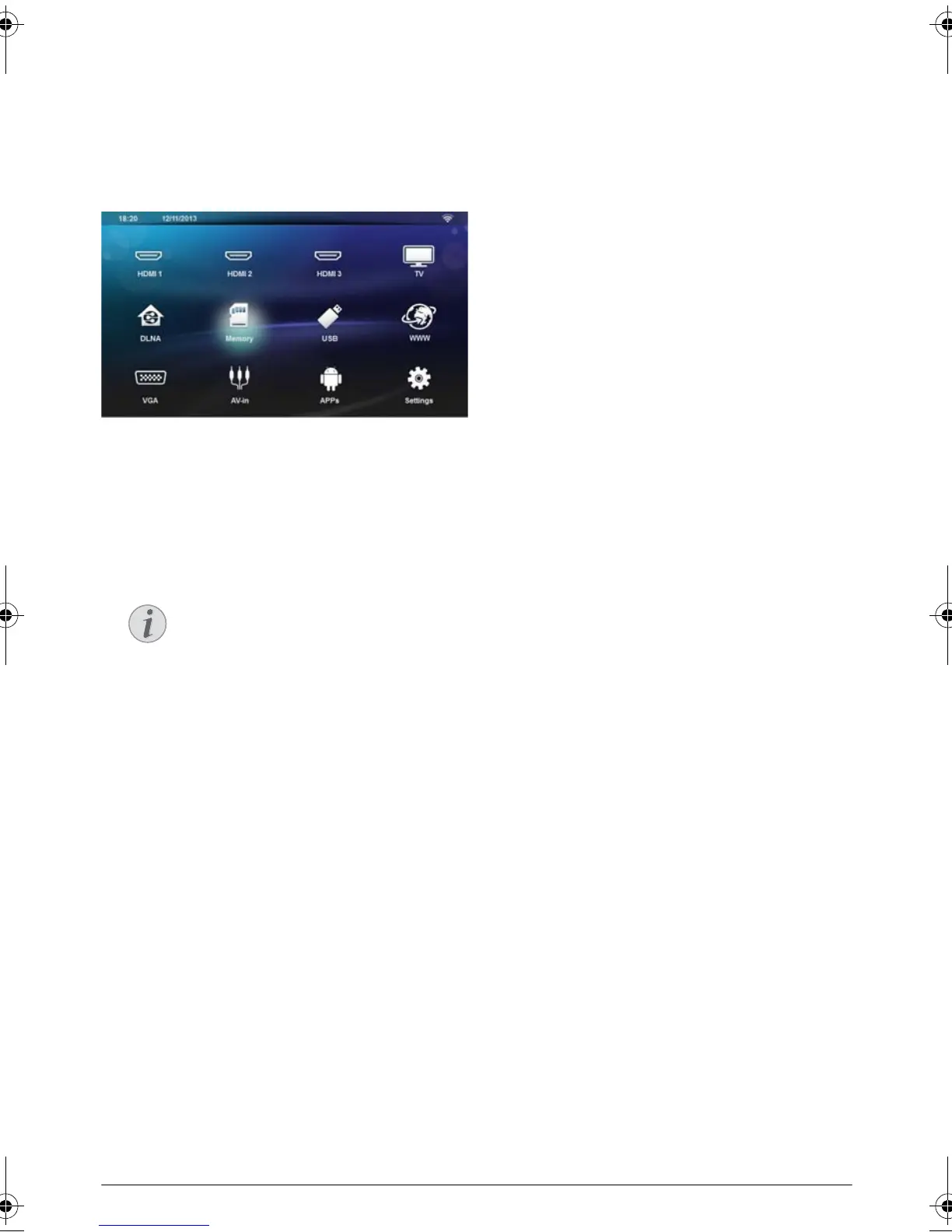 (USB, Memory or DLNA).