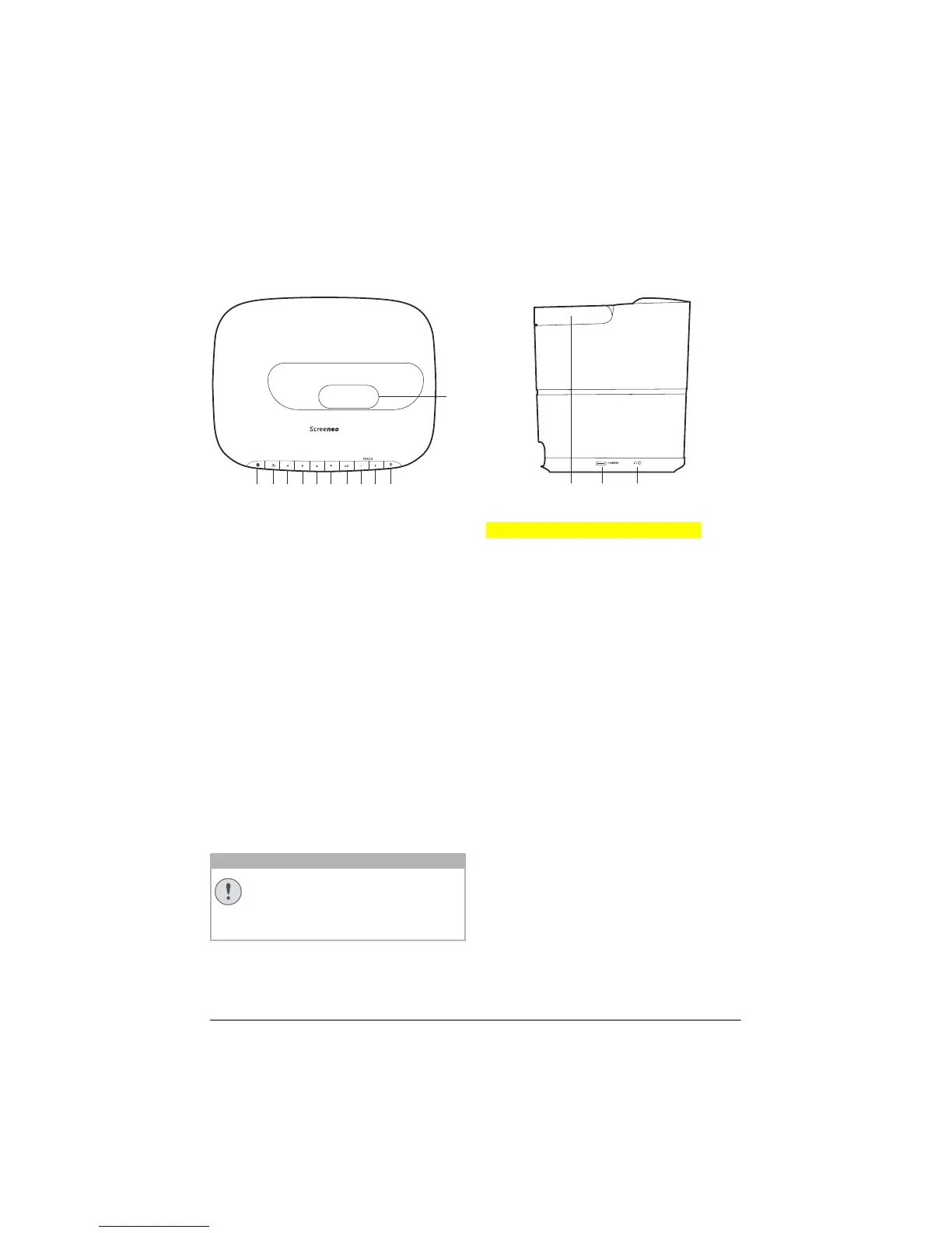 Short press: Powers on the projector.
