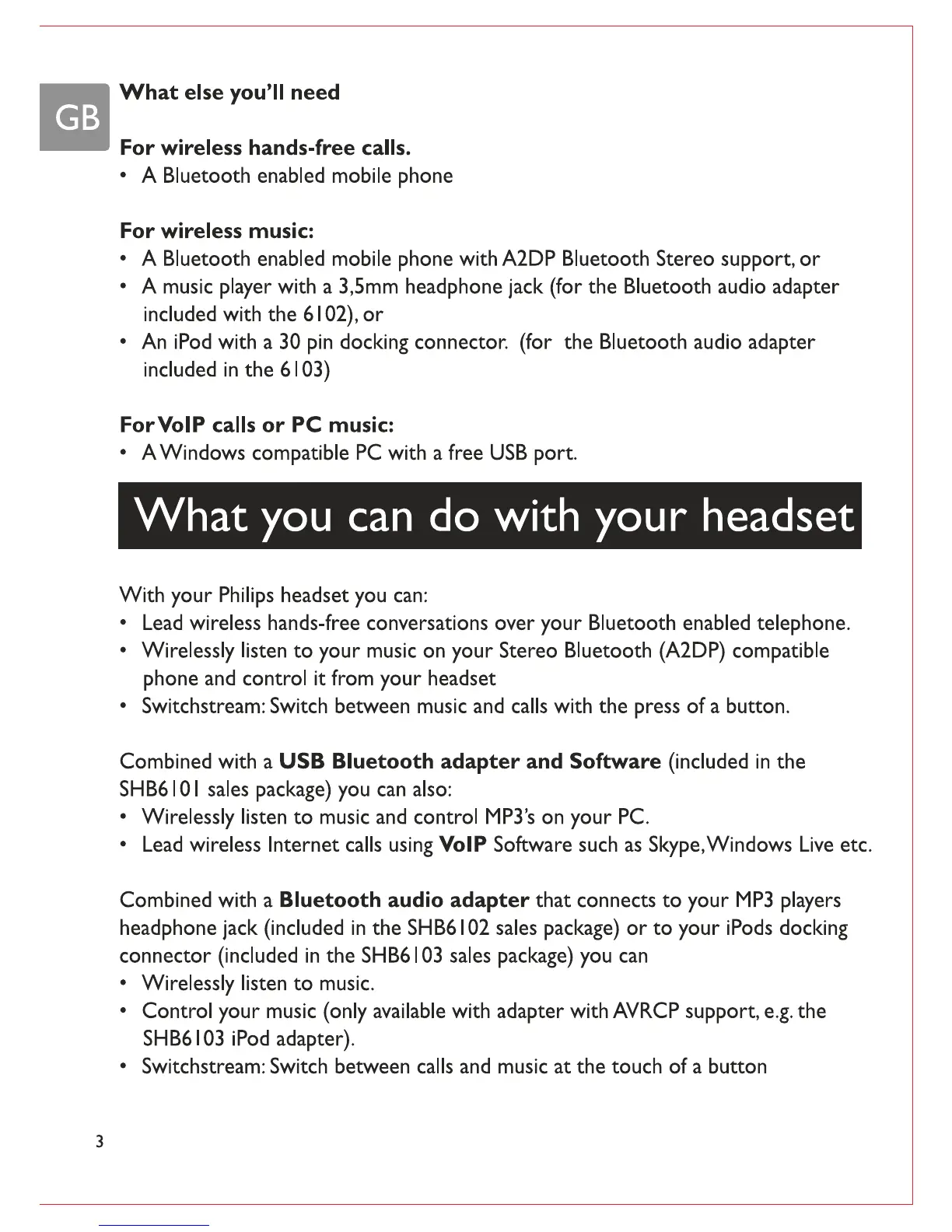 Philips SHB6100 - Headset Functionality Overview
