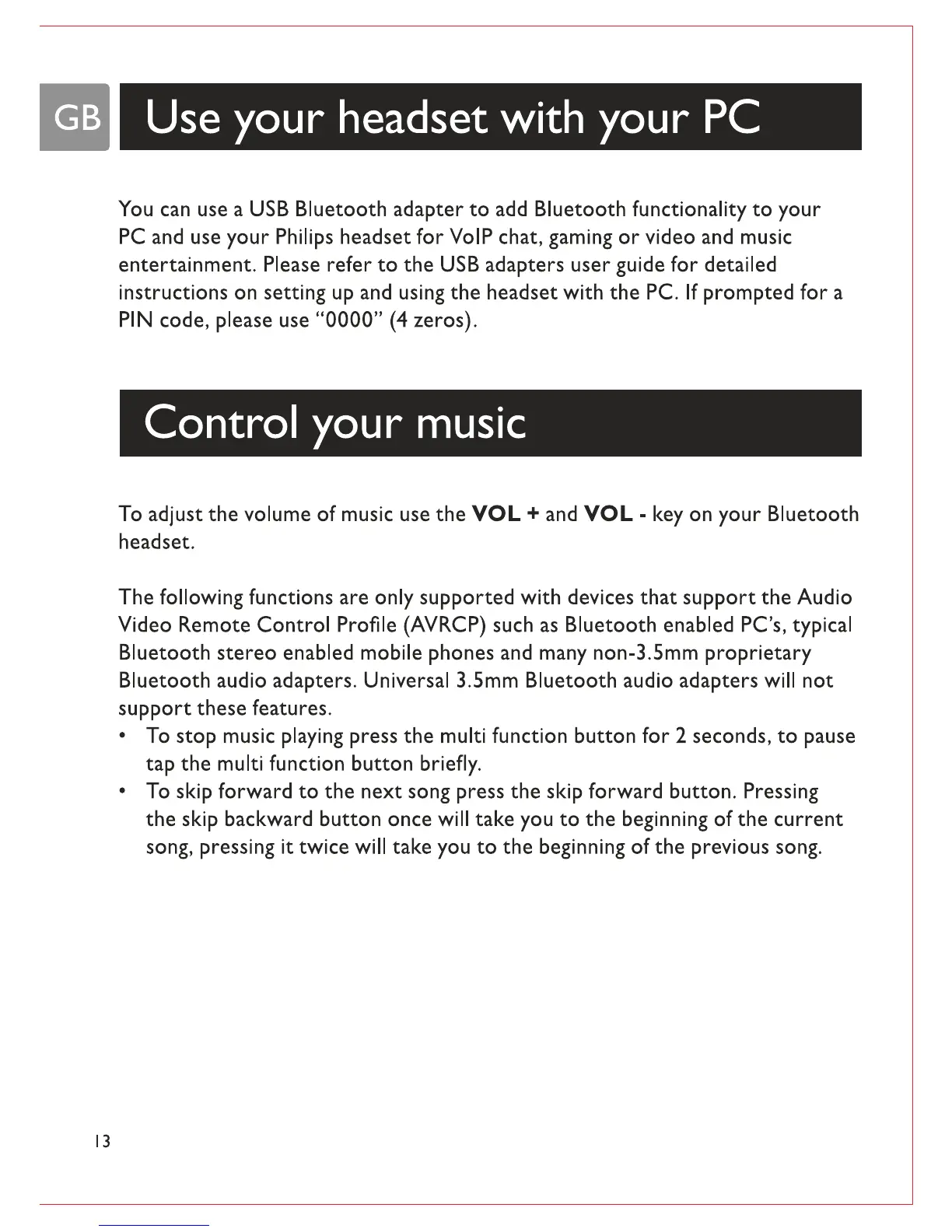 Philips SHB7102 - Use your headset with your PC; Control your music