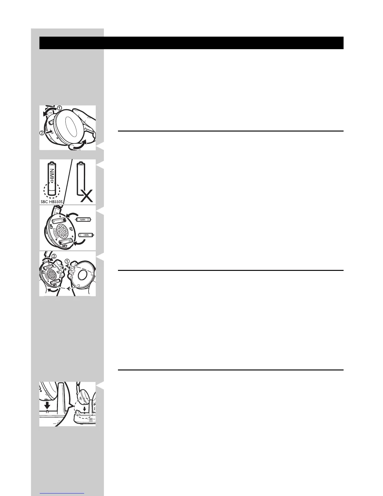 2 Insert the rechargeable batteries into the battery compartment.