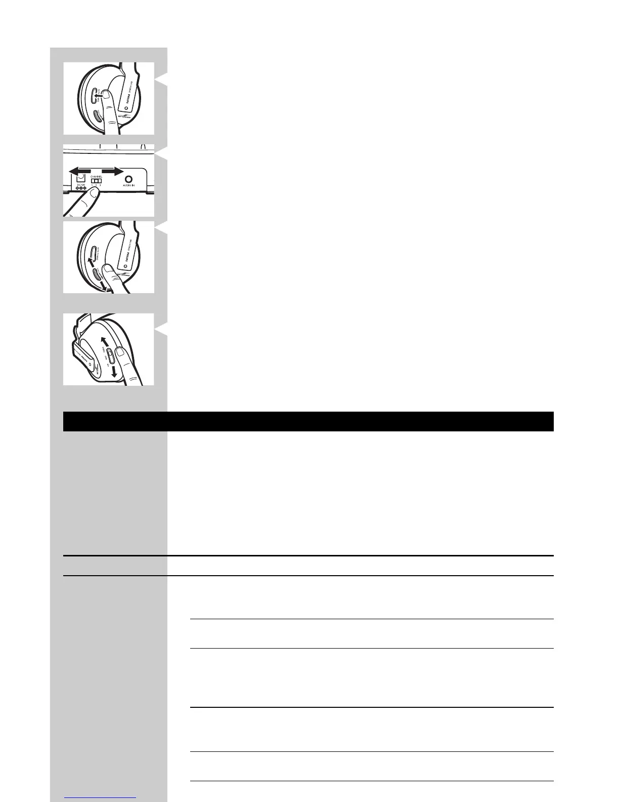 13 Aby dostroić słuchawki do właściwego kanału nadajnika, wciśnij i