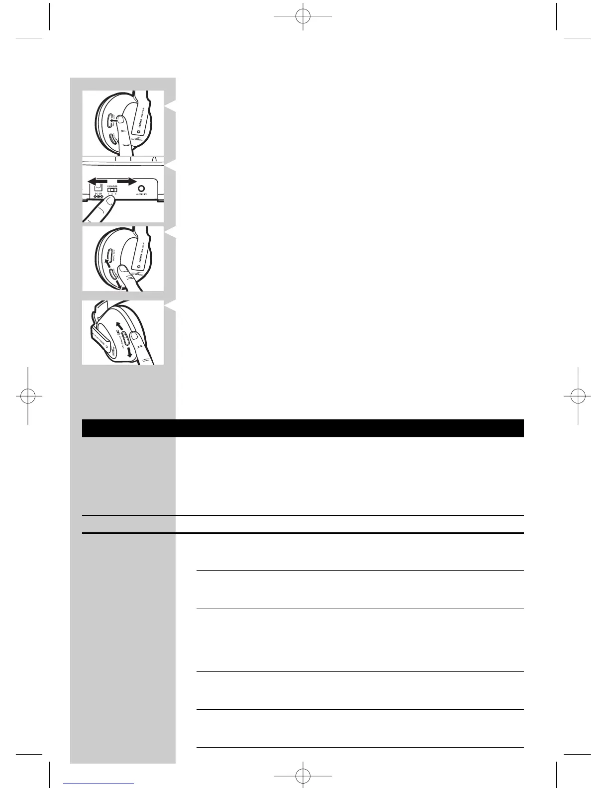 darbības, lai noskaņotu austiņas uz raidītāja signālu.
