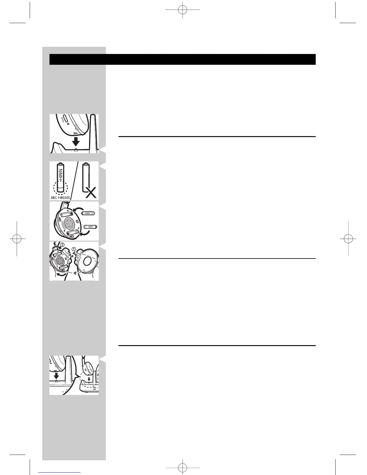 2 Insert the rechargeable batteries into the battery compartment.