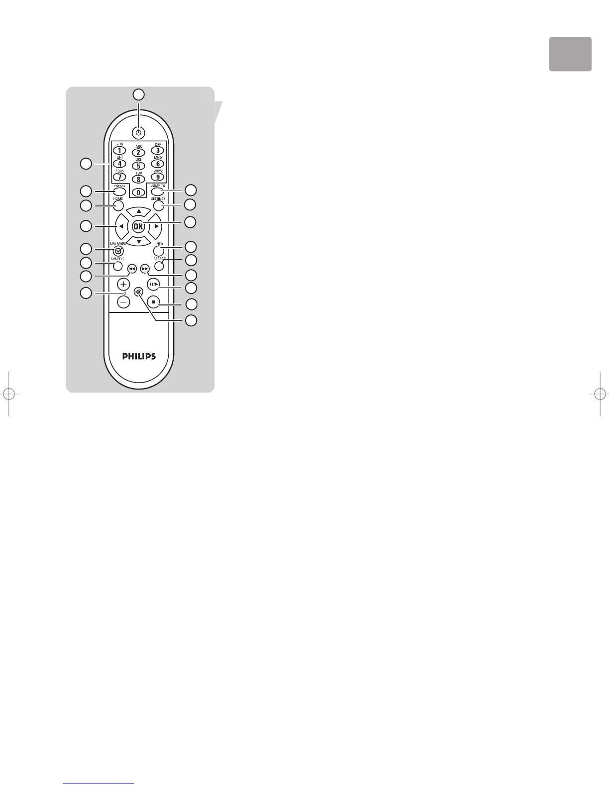 Press this button once to jump back to the beginning of the currently playing