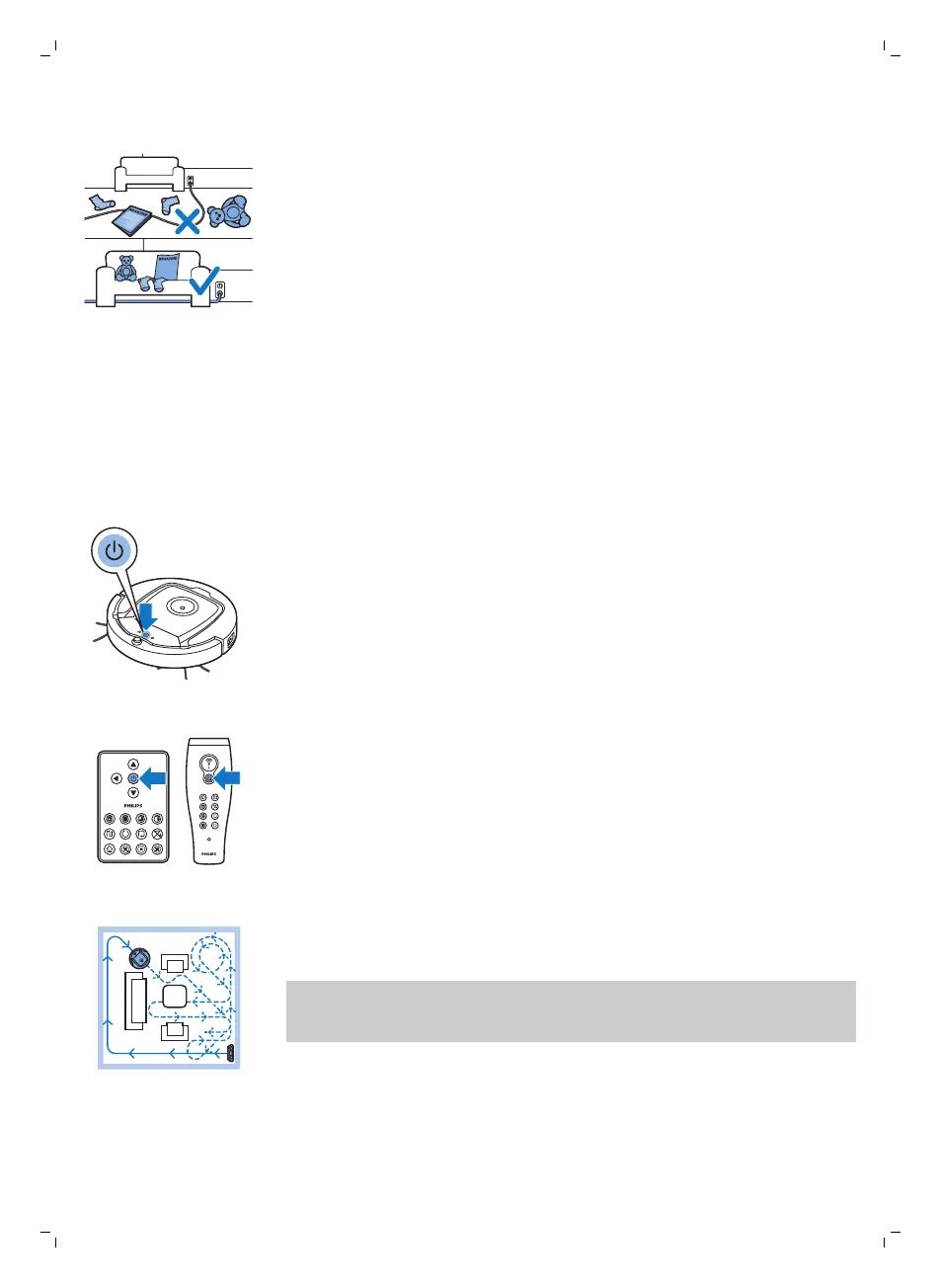 4 The robot cleans in the auto-cleaning mode until its battery runs low. In