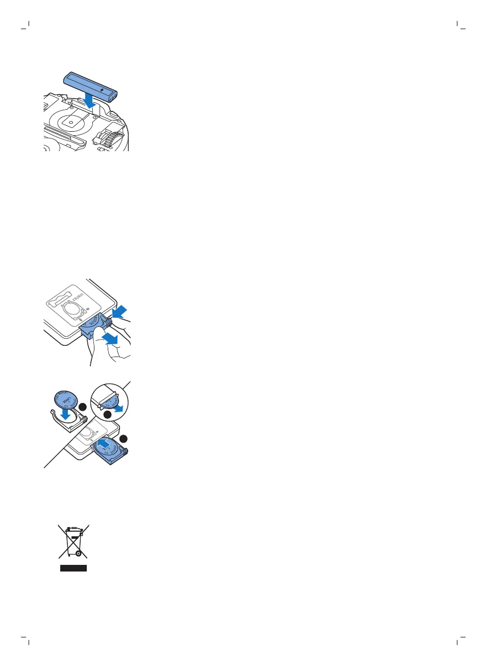 2 Remove the empty battery from the battery holder and place a new