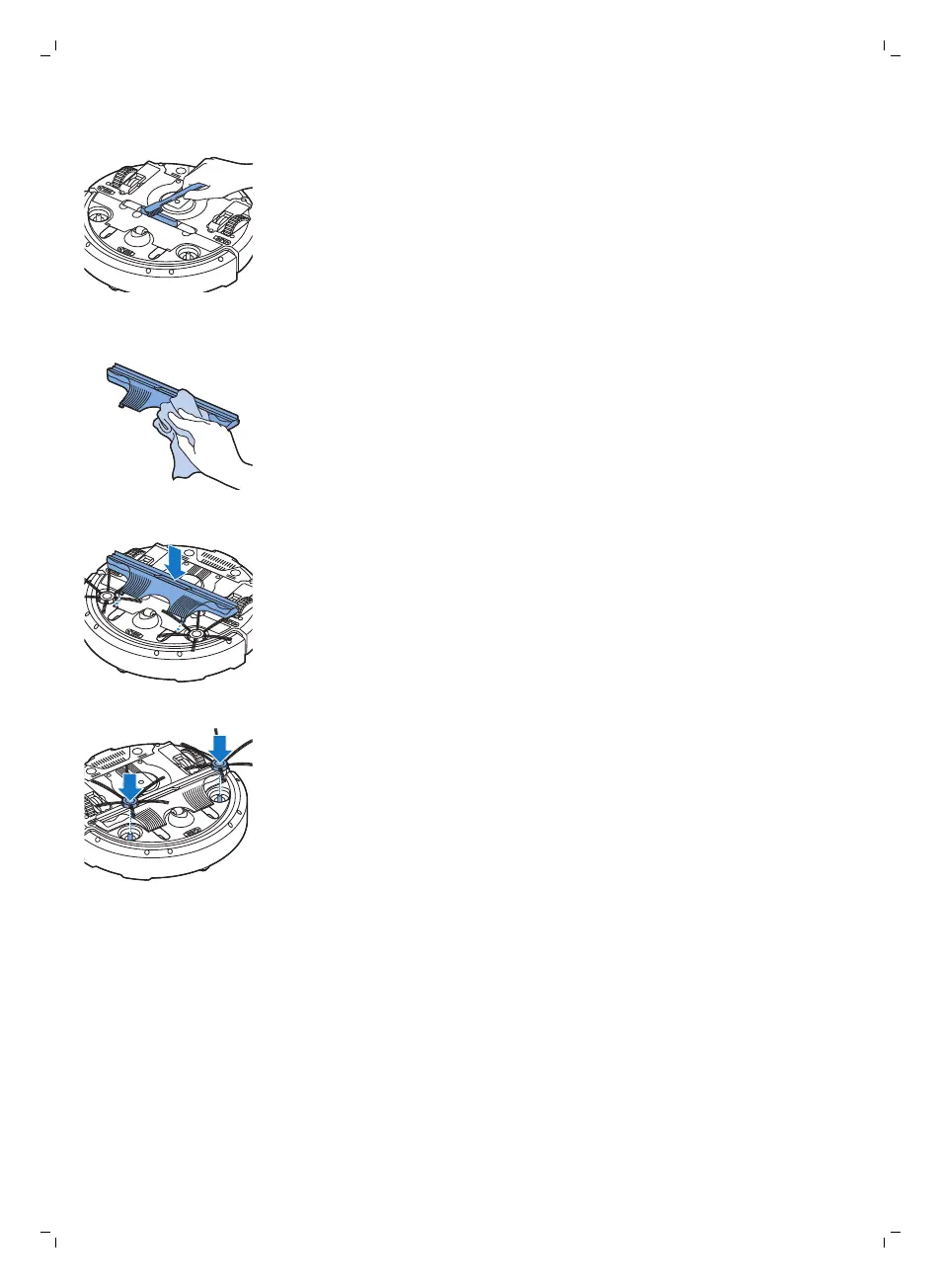 11 사이드 브러시를 로봇 청소기 하단 축에 다시 끼웁니다.