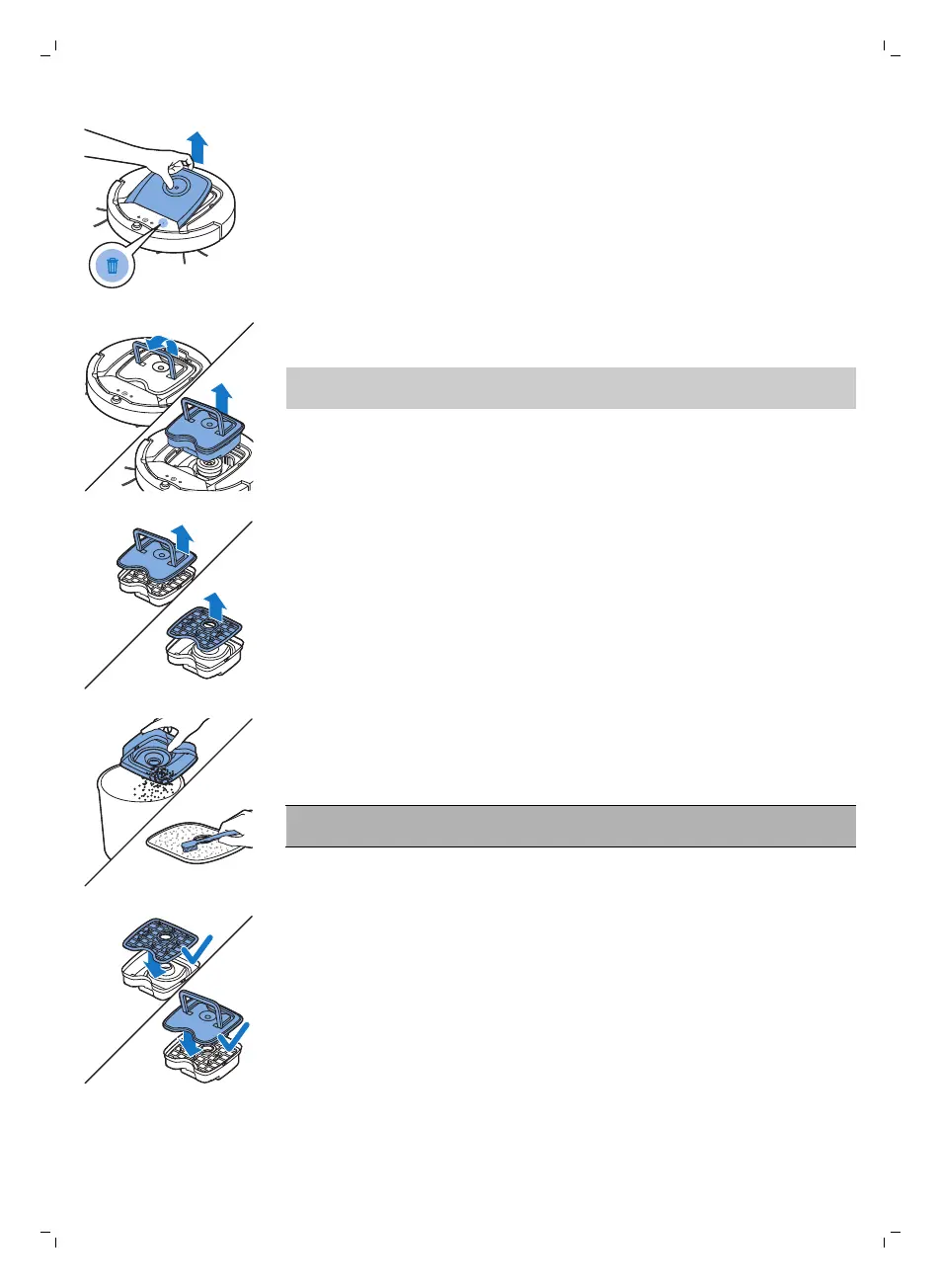 Bersihkan penuras dan bahagian dalam bekas habuk dengan kain atau