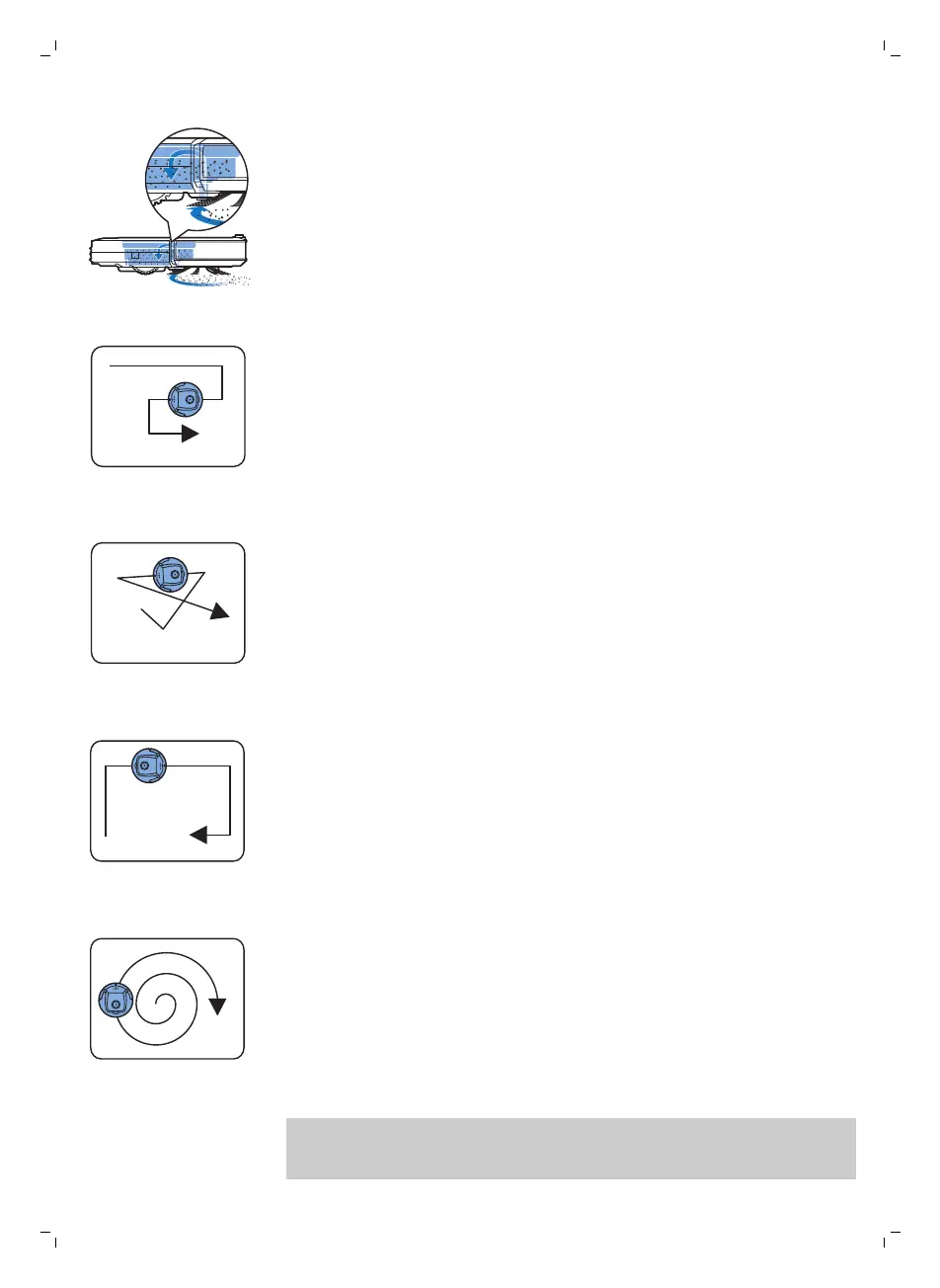 ในโหมดทำความสะอาดอัตโนมัติ หุ่นยนต์จะใช้รูปแบบเหล่านี้ในลำดับที่ตายตัว ได้แก่ รูปแบบ Z,