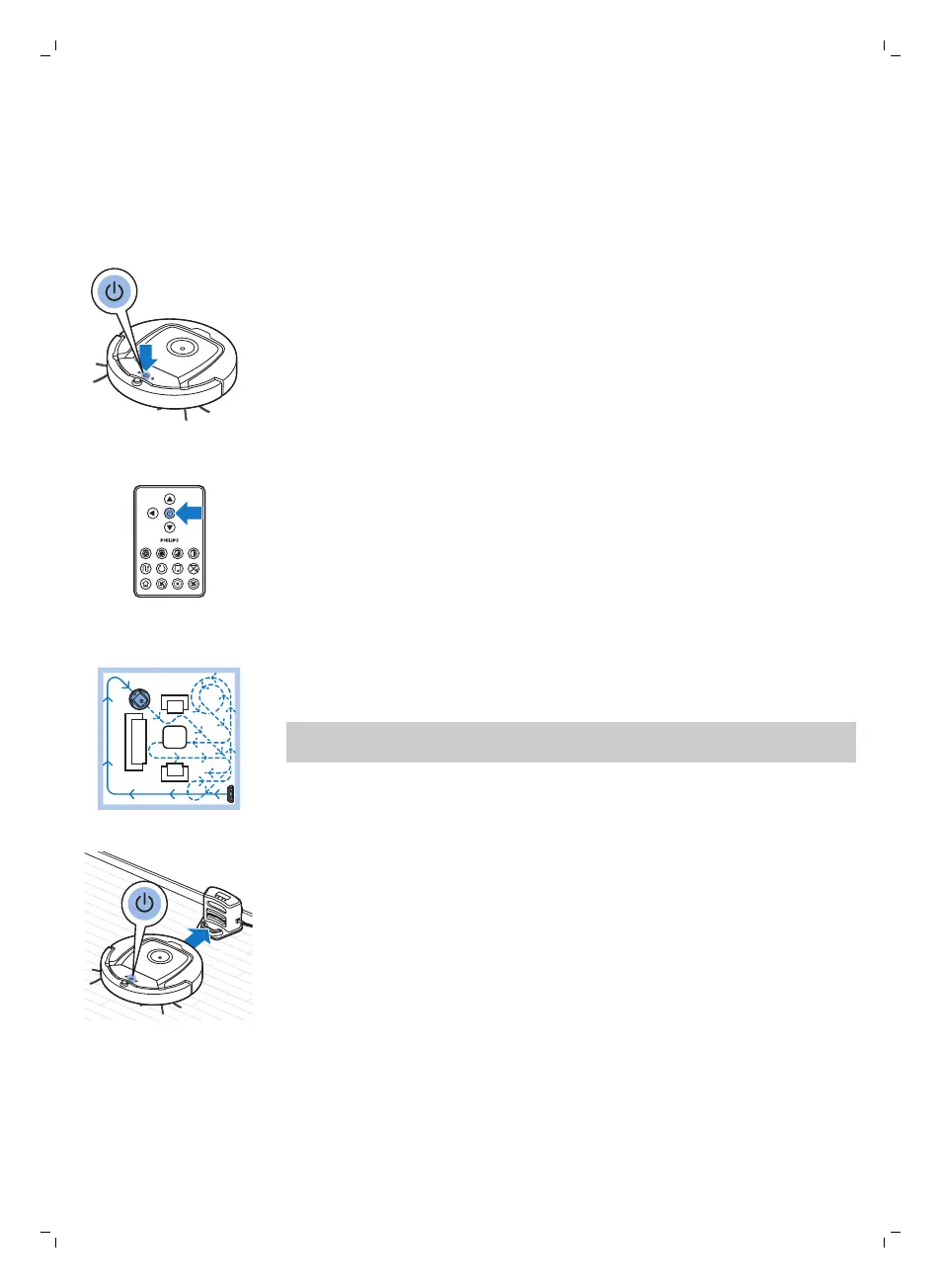 4 หุ่นยนต์จะทำความสะอาดในโหมดทำความสะอาดอัตโนมัติจนกระทั่งพลังงานแบตเตอรี่ลดต่ำ