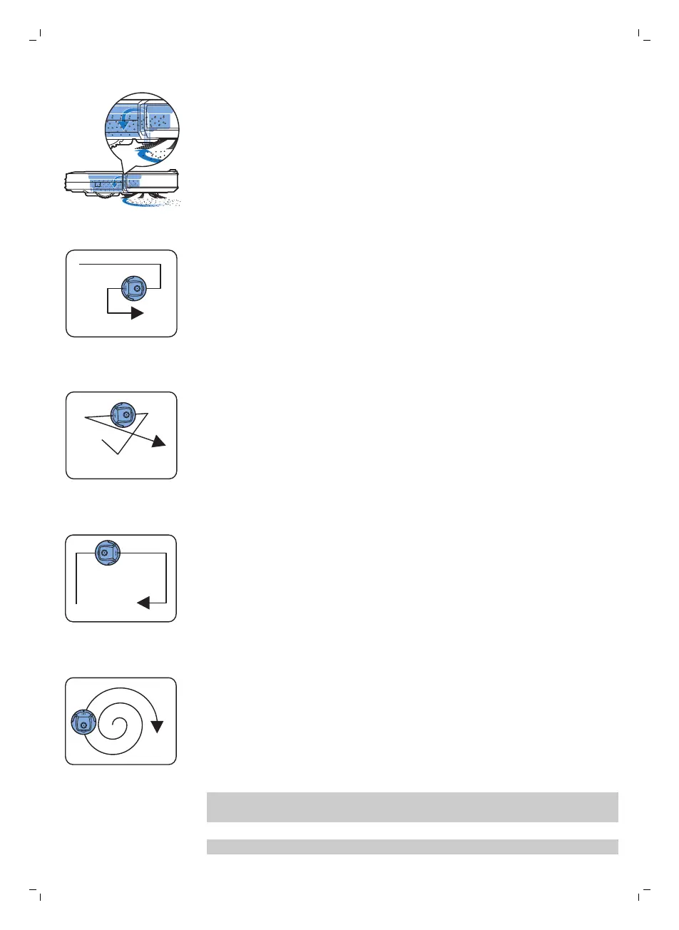 啟用自動清潔模式時,自動吸塵機器人會依循自動的清潔模式順序,徹底清潔房間