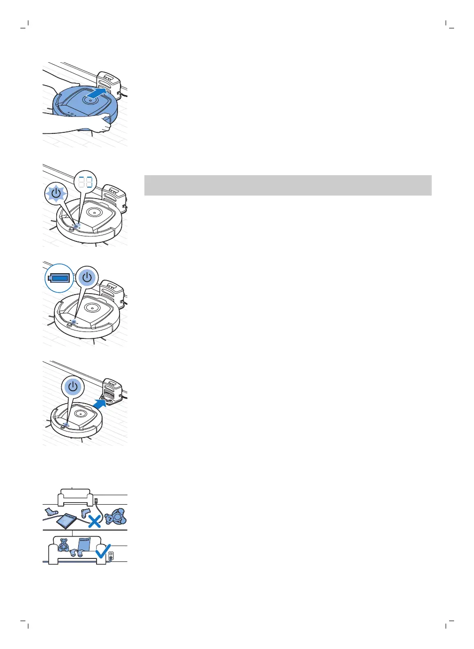 2 將自動吸塵機器人放在已插電的機座上。