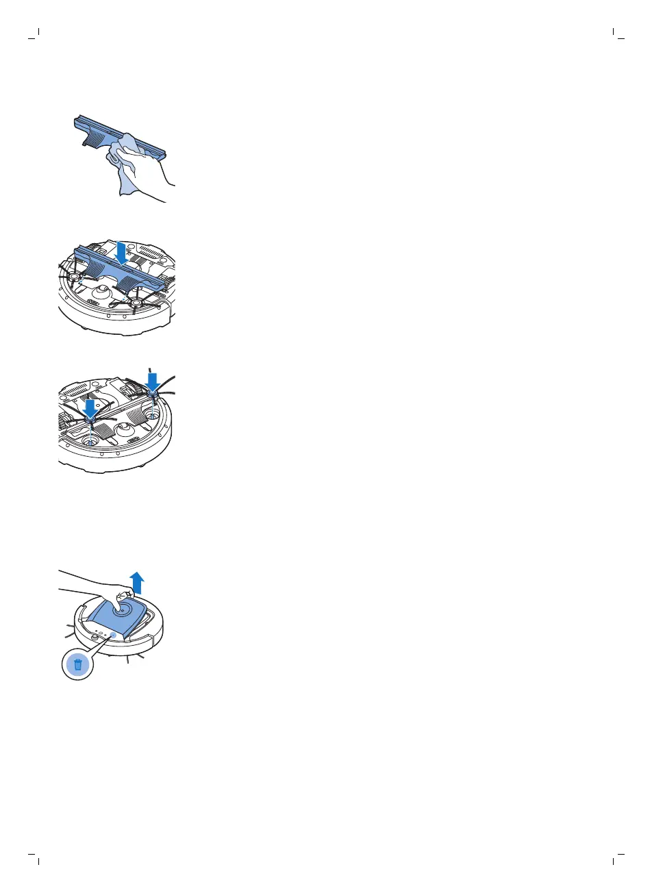 11 再次將側邊刷毛推入自動吸塵機器人底部的驅動軸上。