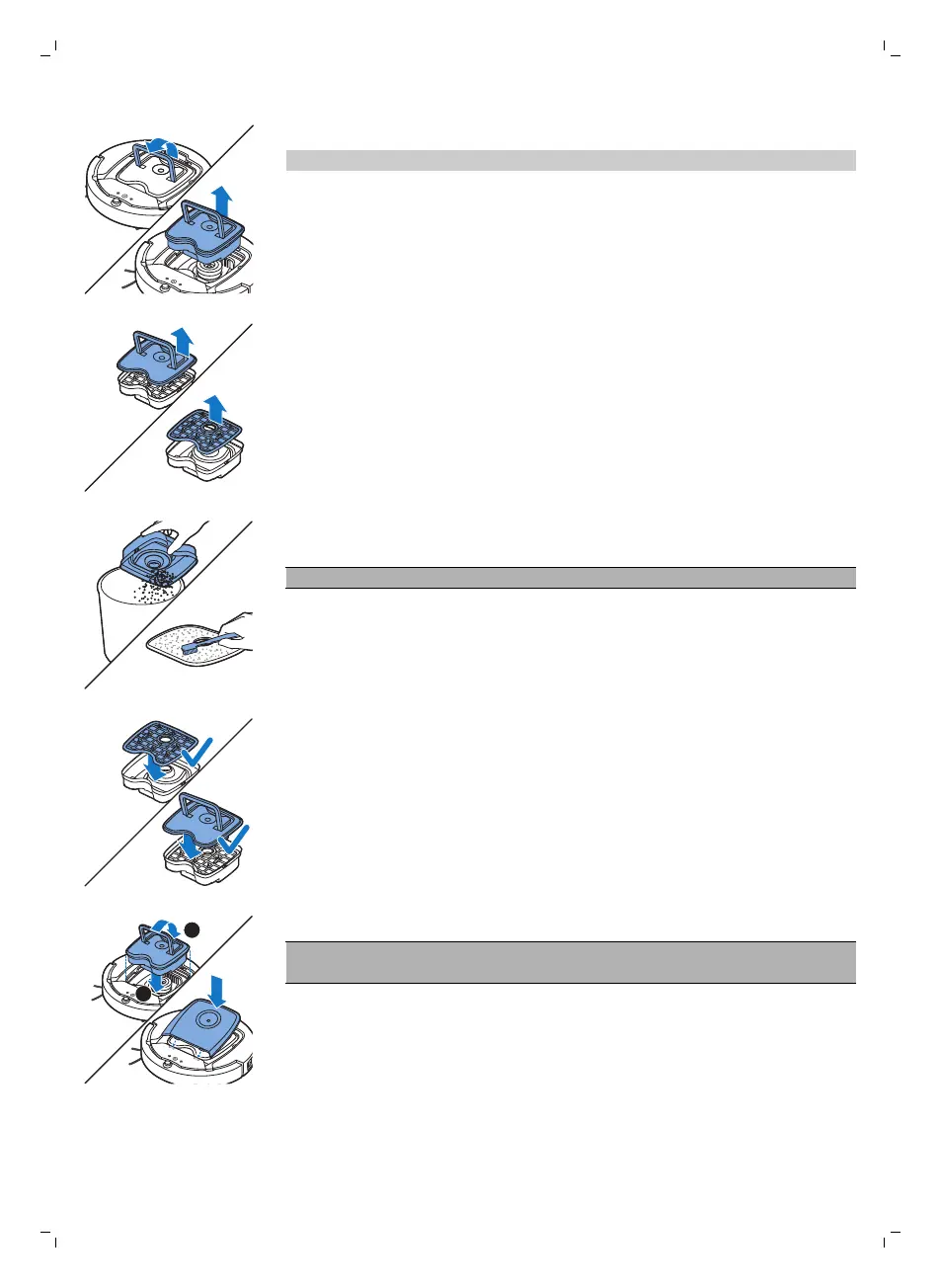 7 將集塵盒裝回集塵室中,並將頂蓋裝回自動吸塵機器人上。
