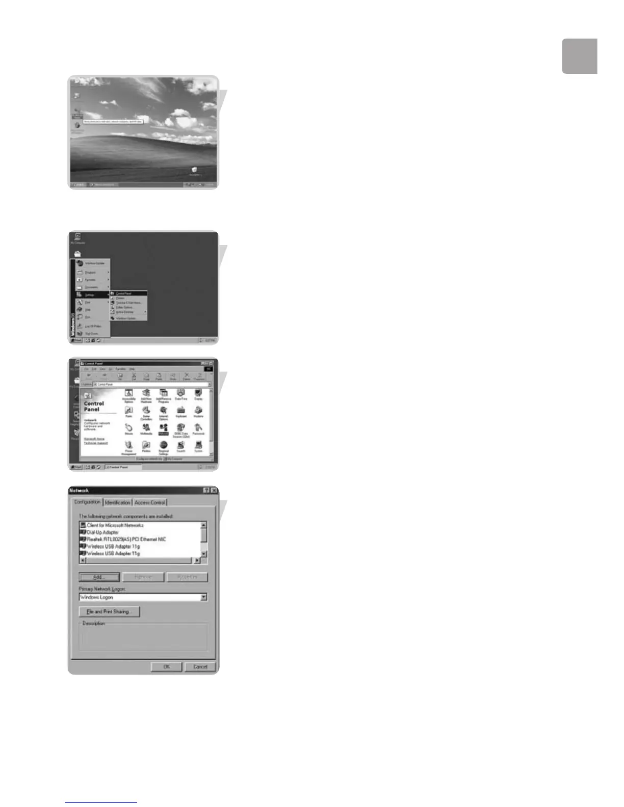 Click the Windows Start button, click ‘Settings’, and click ‘Control Panel’ from the