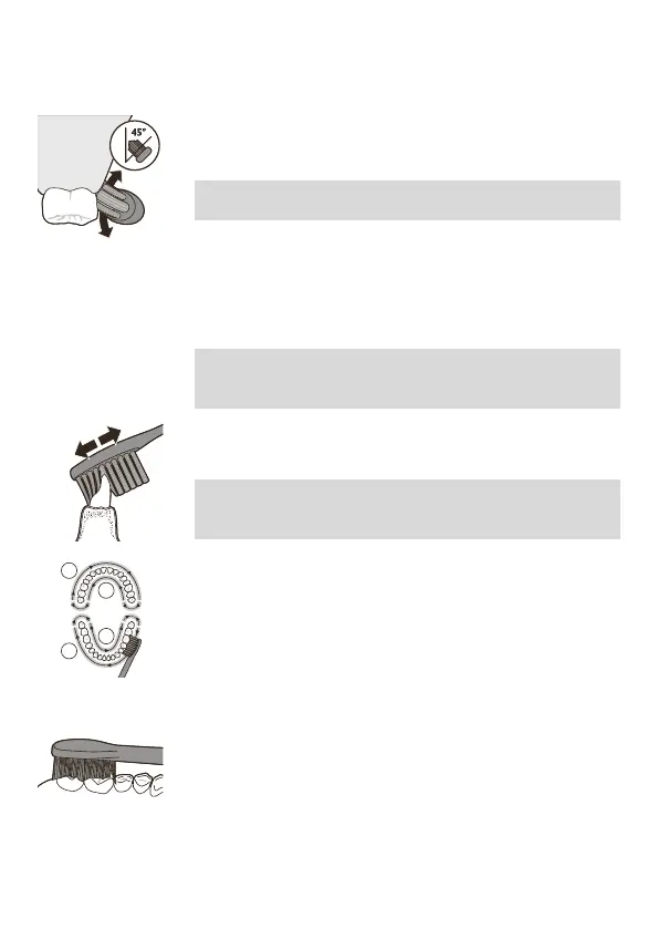 Ščetine nežno držite na zobeh in dlesnih. Ščetkajte