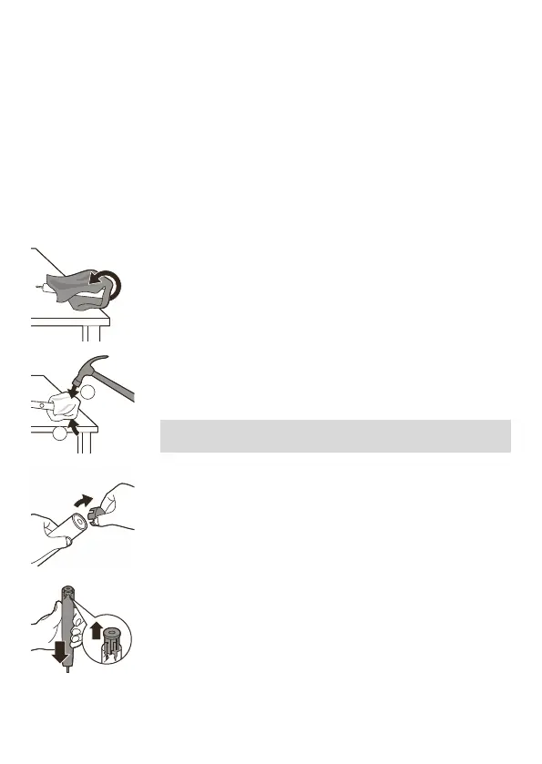 põhjast. Otsakatte vabastamiseks lööge haamriga
