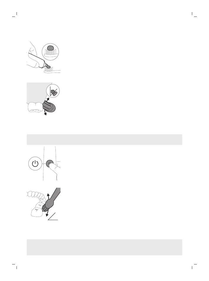 graden) tegen de tanden. Oefen stevige druk uit, zodat de borstel het