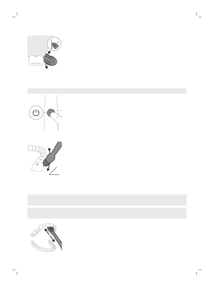 Odločno pritisnite, tako da ščetine dosežejo rob dlesni ali malo pod robom