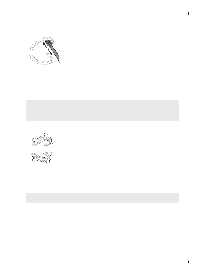 Ak chcete vyčistiť vnútornú stranu predných zubov, nakloňte rukoväť kefky