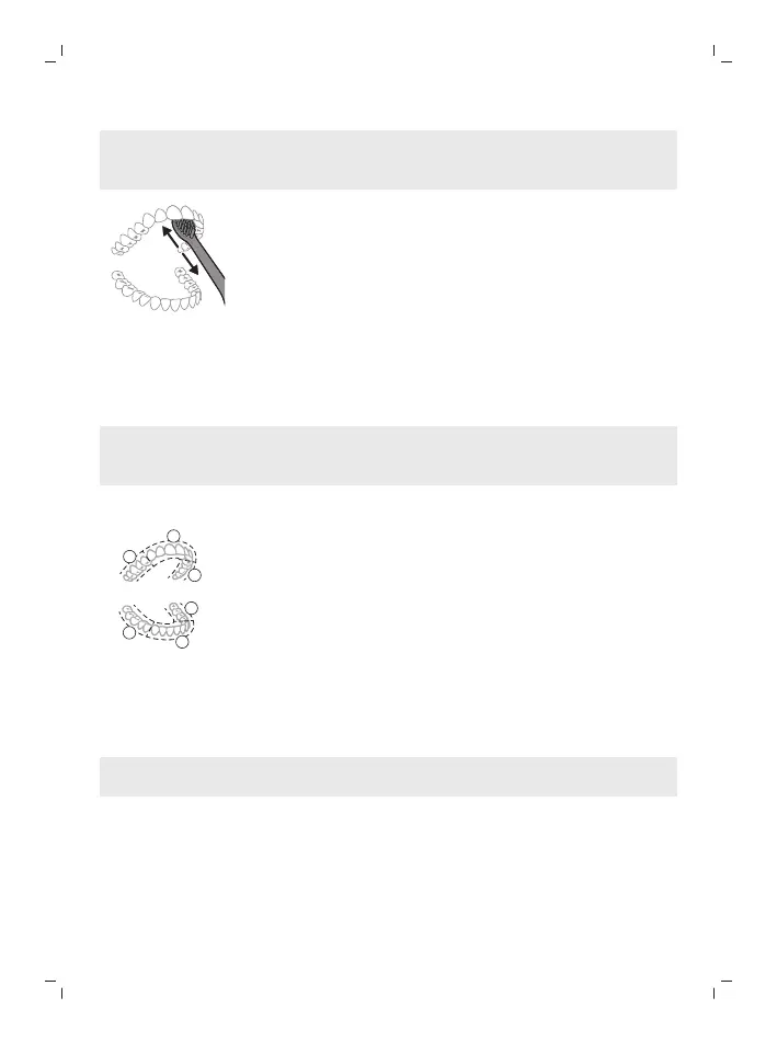 augšu un veiciet vairākas vertikālas tīrīšanas kustības uz katra zoba.