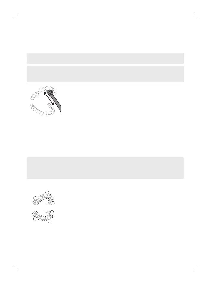 uşoară mişcare înainte şi înapoi astfel încât perii să pătrundă între dinţi.