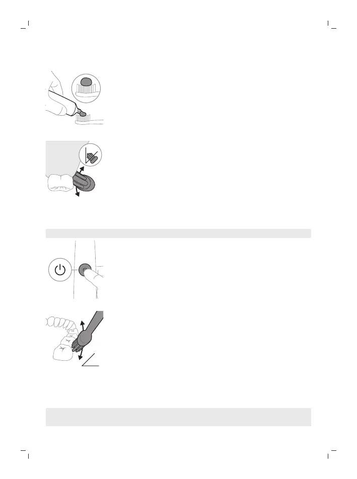 Håll borsten försiktigt mot tänderna och tandköttskanten. För