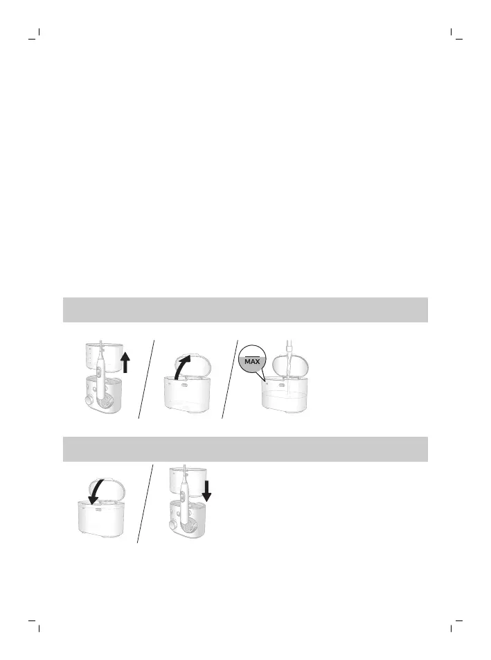 Open the lid, fill the reservoir with lukewarm water to the MAX fill line.