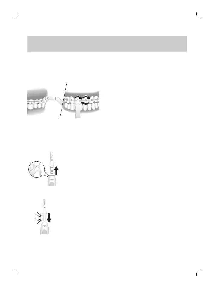 a Для очистки брекетов и участков вокруг них поднесите кончик