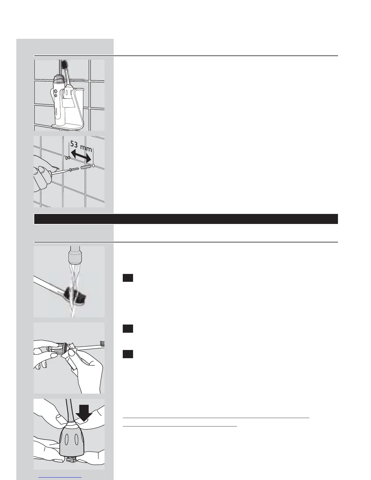◗ Fixez le support de luxe pour la brosse au mur à l'aide de 2 vis