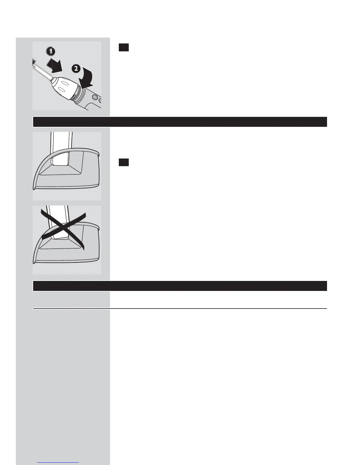 ◗ When the handle is placed incorrectly in the charger, the green