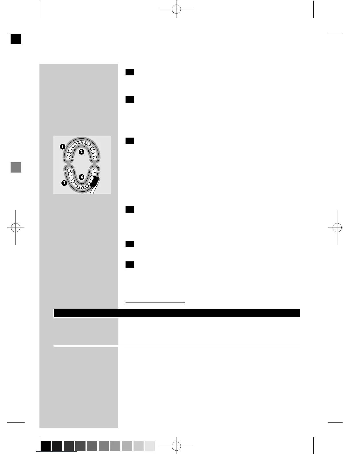 section 2 (inside top teeth). Continue brushing for 30 seconds