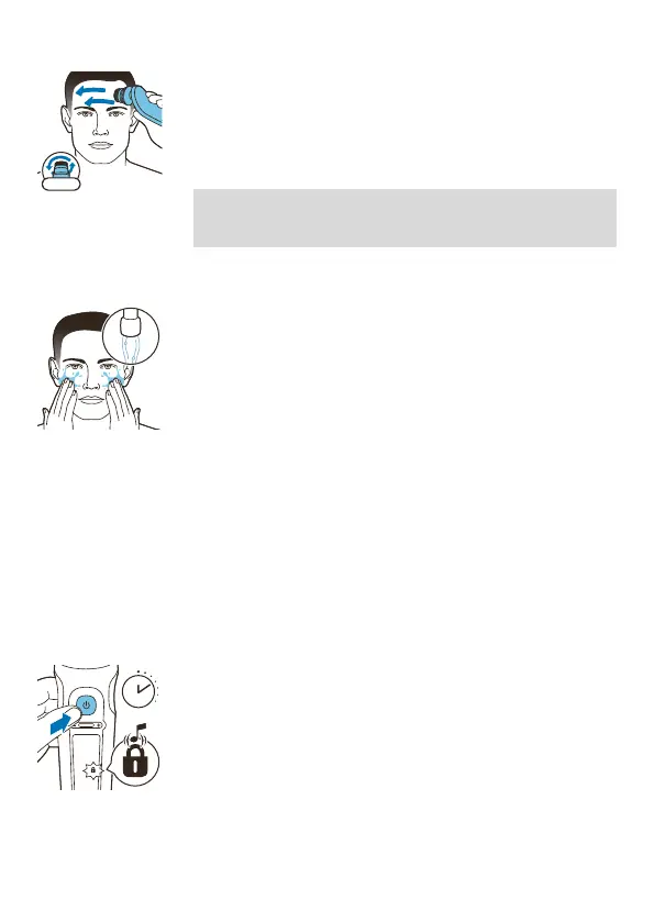 mueva el aparato a la frente y empiece a