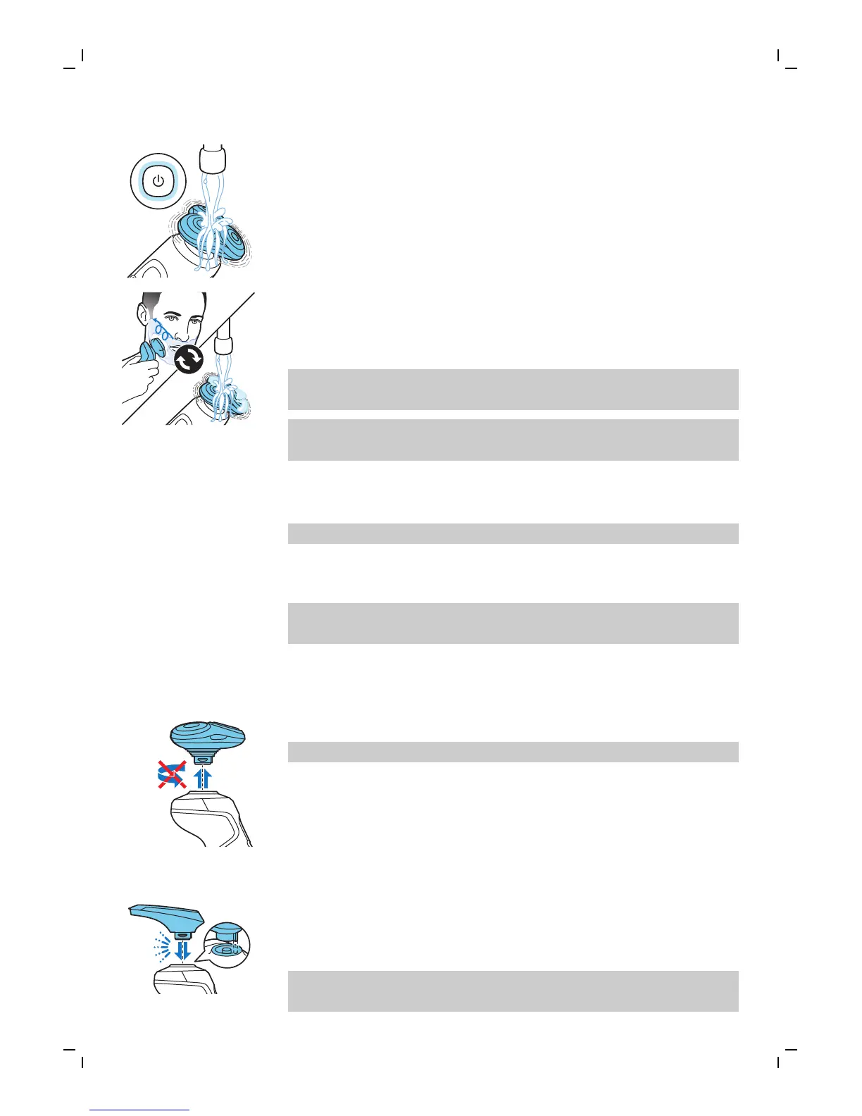 注意: 定期冲洗剃须刀头部件,确保其能够继续在