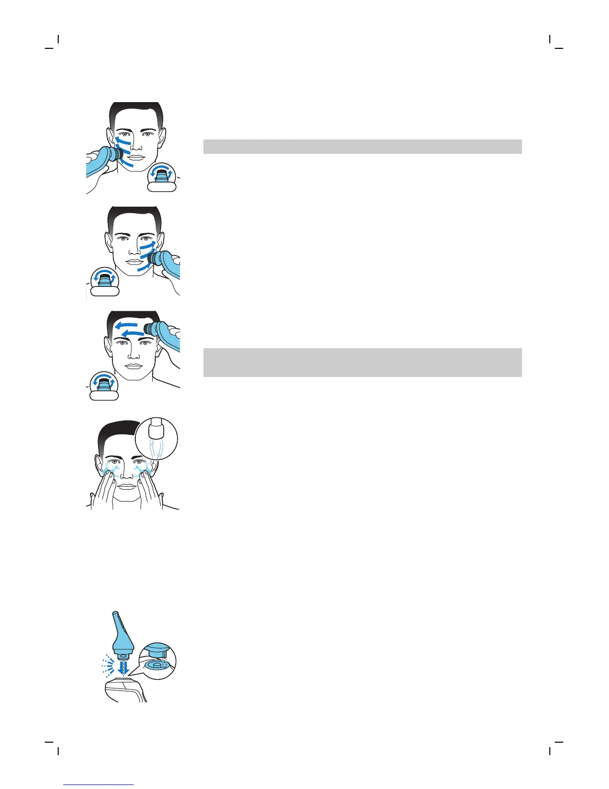 面部皮肤。 轻轻将刷头从左向右移动。
