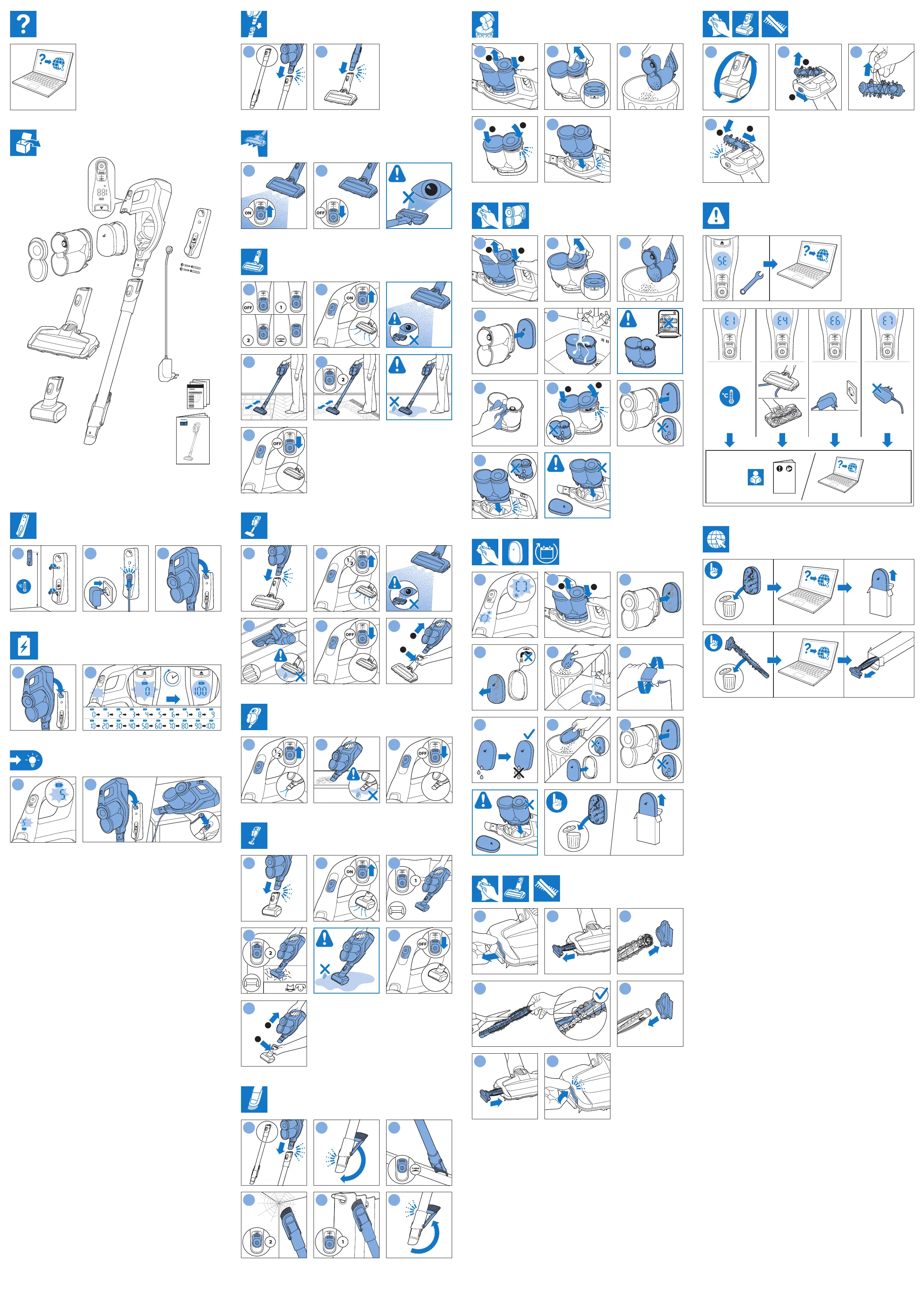 Philips SpeedPro Max XC7043 - Diagrams and Usage; Assembly and Components; Charging the Battery; Operation Modes