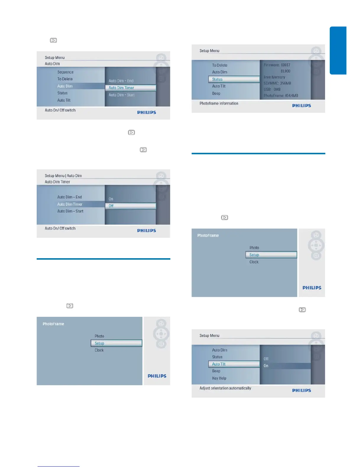 5 Select [Auto Dim Timer], and then press