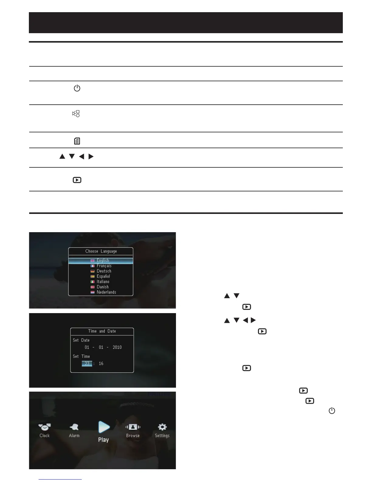 - Hold to turn on/off the PhotoFrame