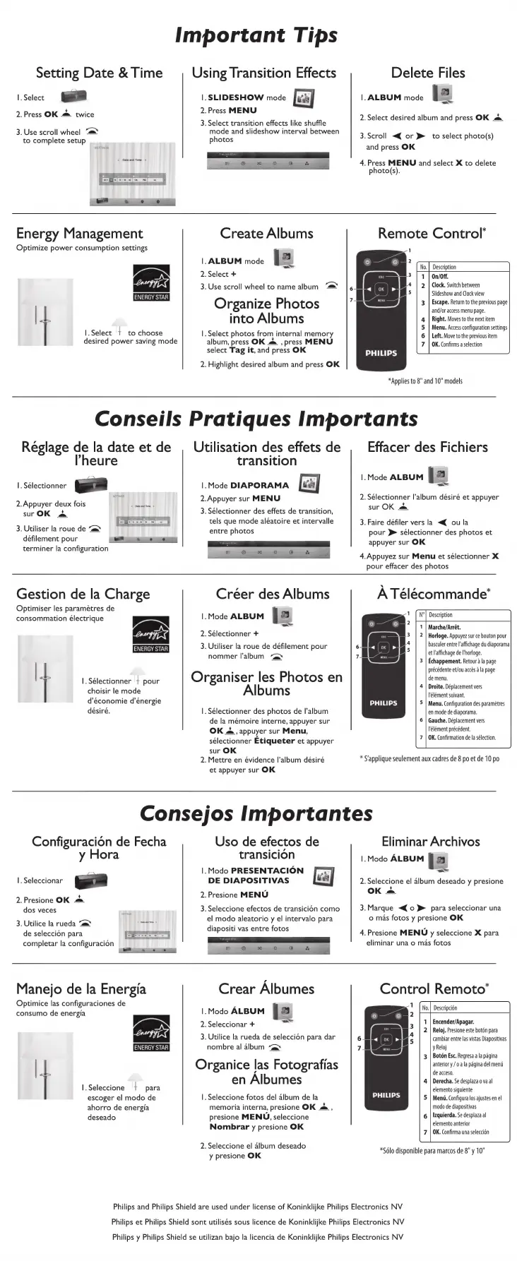 Philips SPF3403/G7 - Setting Date and Time; Date and Time Configuration Steps; Energy Management and Power Saving; Managing Photo Files