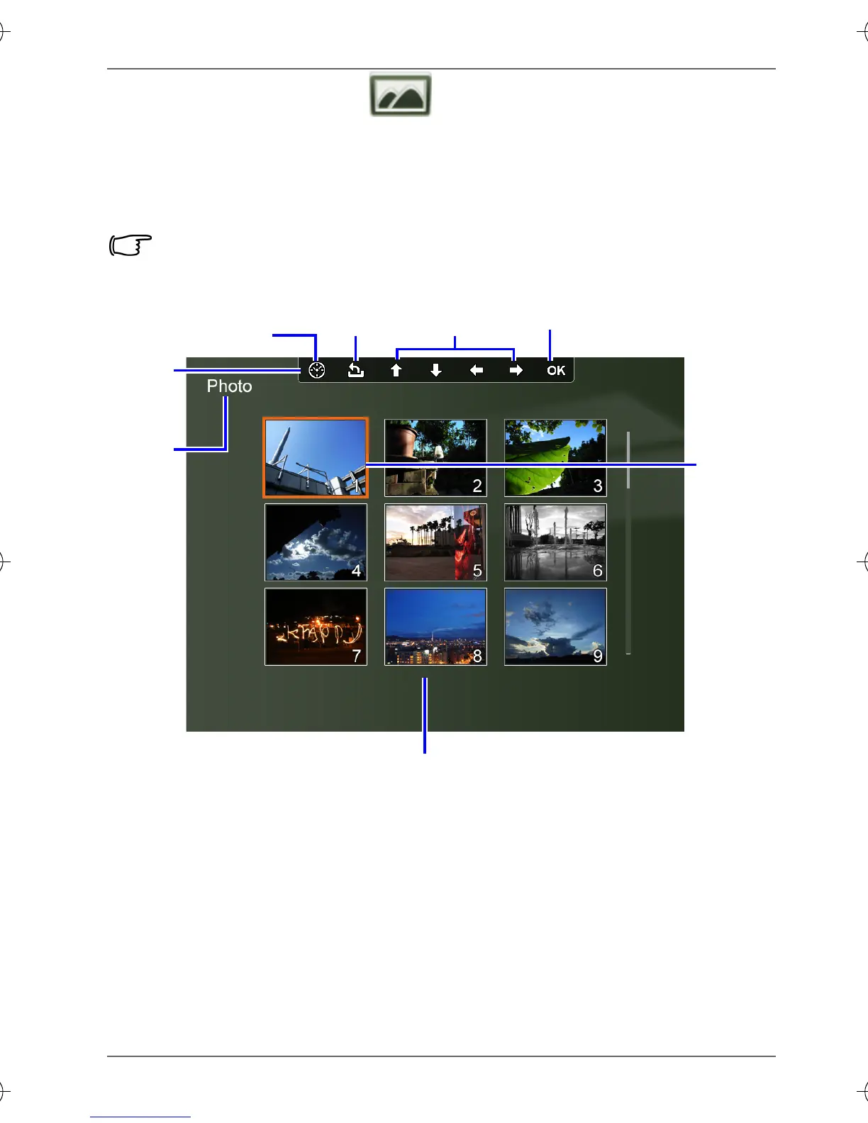 The Photo mode allows you to view photos that are stored in the