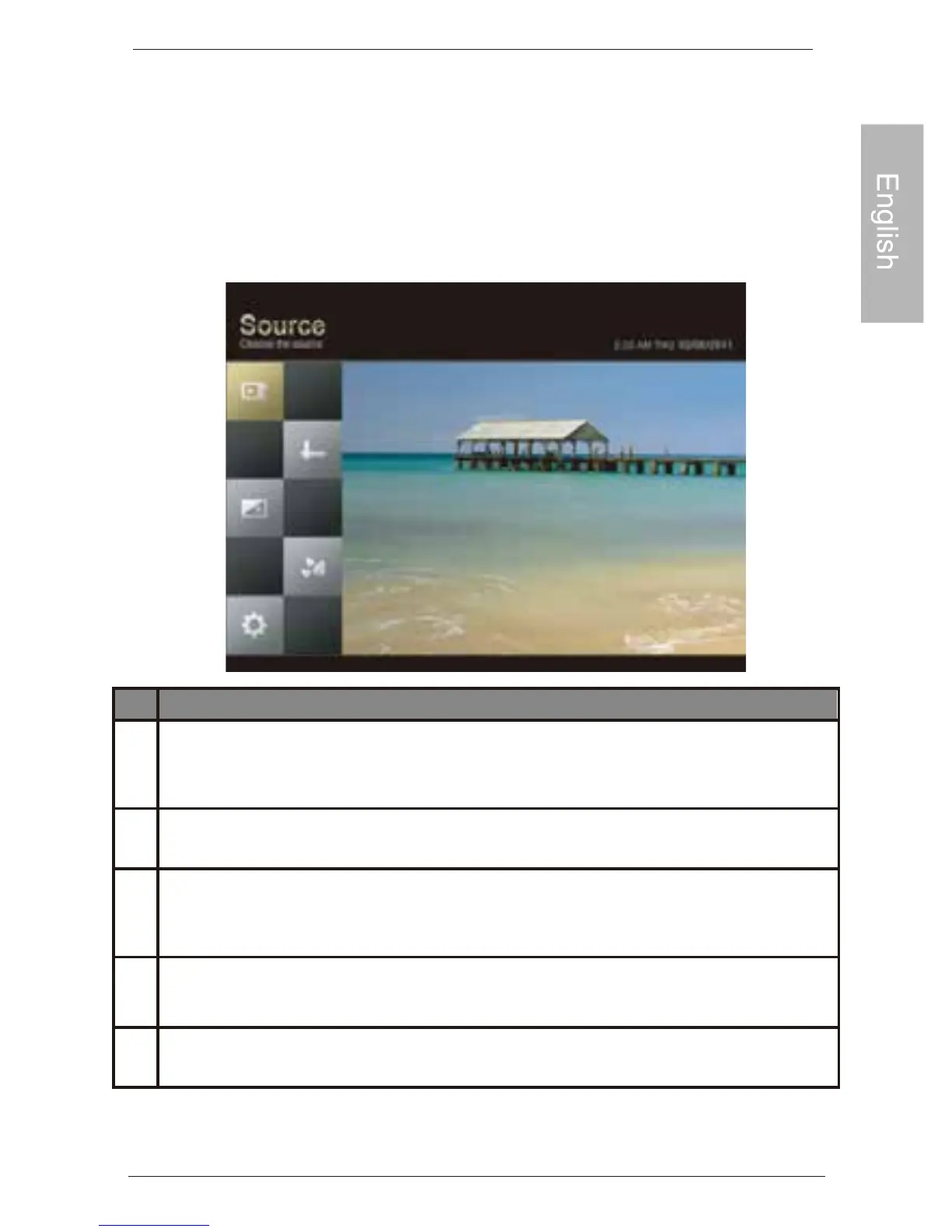 Allows you to select the media source among USB flash